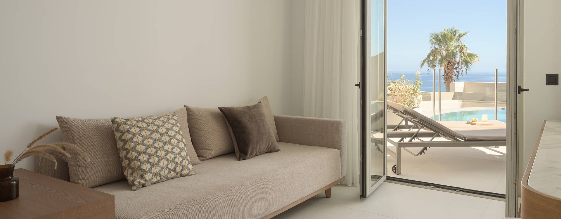 Designed to blend seamlessly with nature, our 57 luxurious suites stand out for their earthy tones, natural materials, and modern Aegean architectural style, inspired by the beauty and cultural heritage of Crete. With amenities that ensure absolute comfort and privacy, Galaxy Suites is not just a destination; it’s an unforgettable experience.